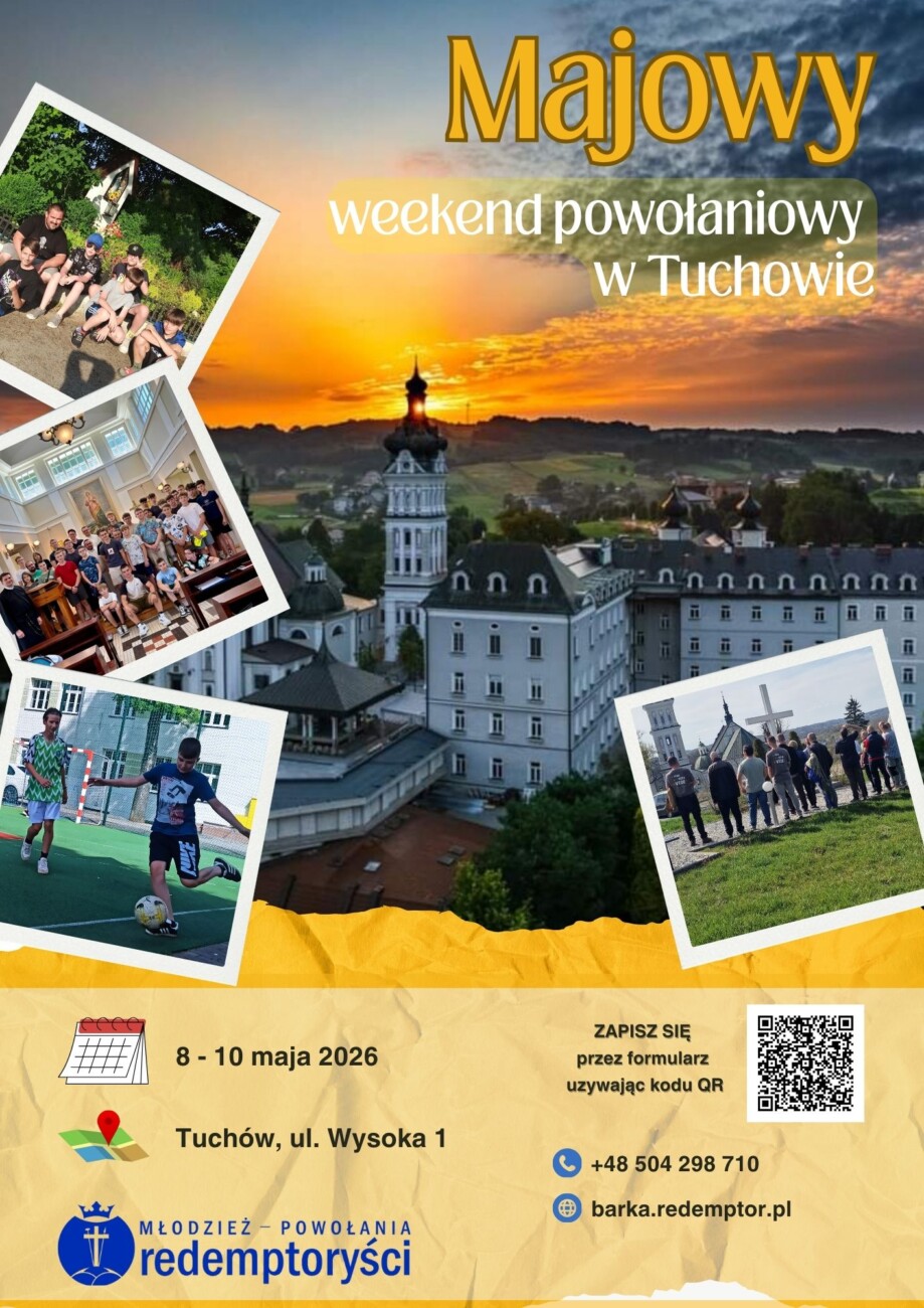 - W najbliższym czasie organizujemy majowy weekend powołaniowy w Tuchowie dla młodzieży męskiej „13+”. To dobry czas by zobaczyć klasztor od środka i spędzić weekend z rówieśnikami. Będzie trochę modlitwy, spotkania w grupach, a jak pogoda dopisze to wybierzemy się na wspólny wypad albo zagramy w piłkę. ZAPRASZAMY 8-10 maja